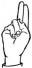 На ћирилици написано ЛАБУДА ПАЈИЋ састоји се из 11 слова [?]. Исписано ћириличном једноручном азбуком за глувонеме: